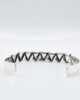 Measures approximately 3/8″ wide with the zigzag pattern measuring 2.5″ in length. This cuff is made to fit small, medium and large wrists. There is a 1″ opening to fit onto the wrist.